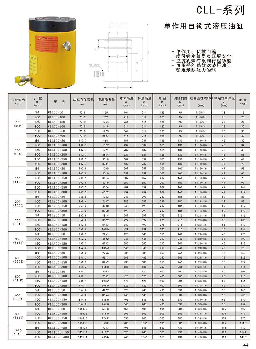 CLL系列-單作用自鎖式液壓油缸